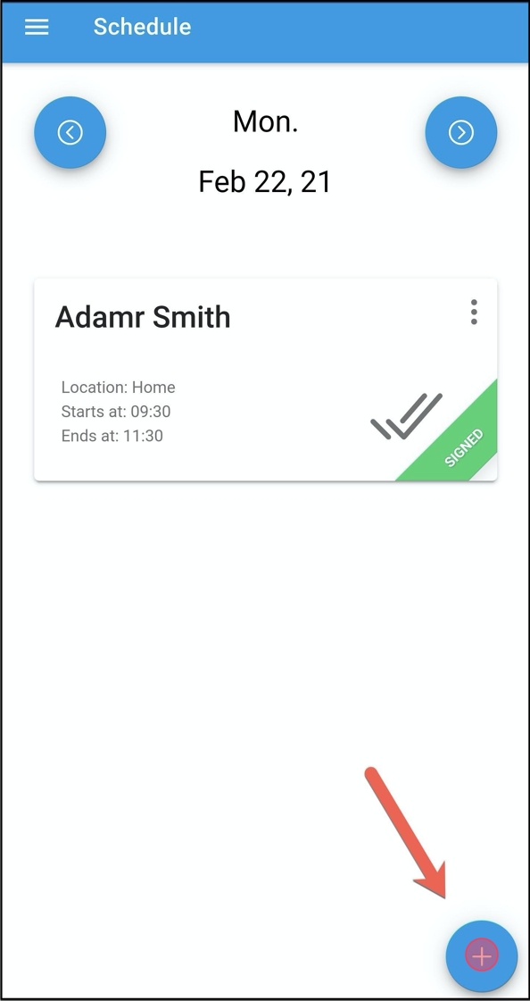 27. To add a visit, click on the plus button located at the right bottom corner of the schedule page: