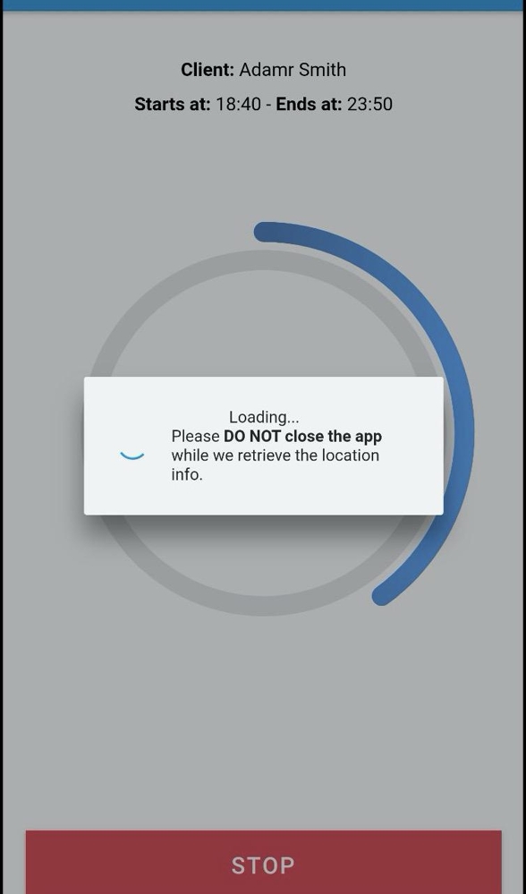 20. When you stop the timer, we collect your device's Location once more. Please be patience while the process completes: