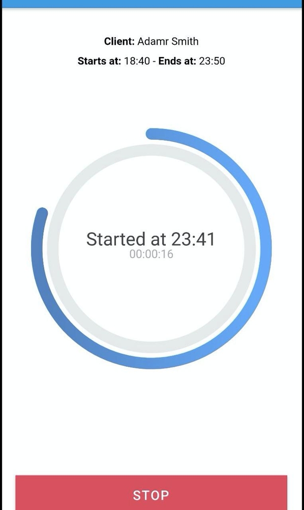 17. If the visit is successfully started, a timer will begin recording your visit time stamps.