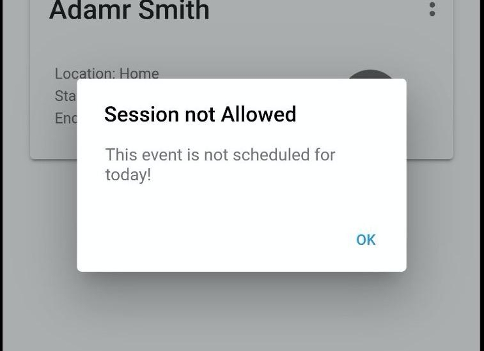 Notice that if you are distant from the scheduled place of therapy, the app will warn you before you Start or Stop the session: