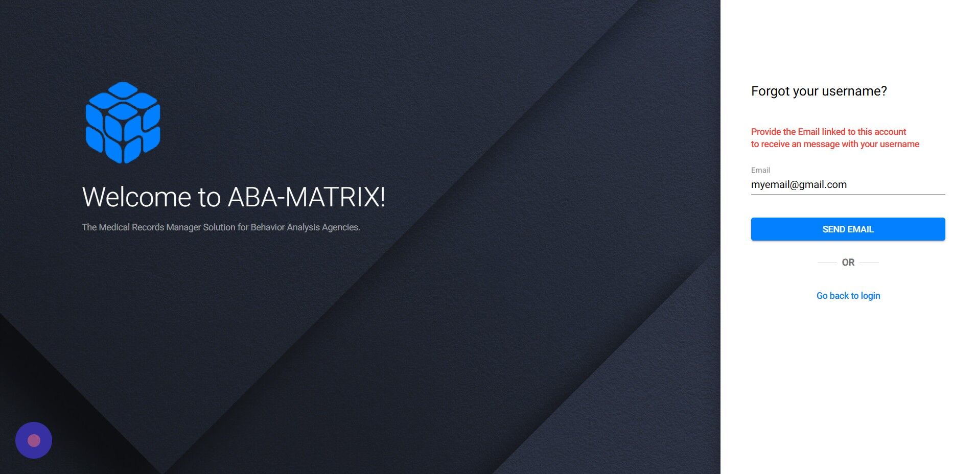 First, let's try to recover your username to make sure you are using the correct credentials (email/username combination) on www.abamatrix.com.