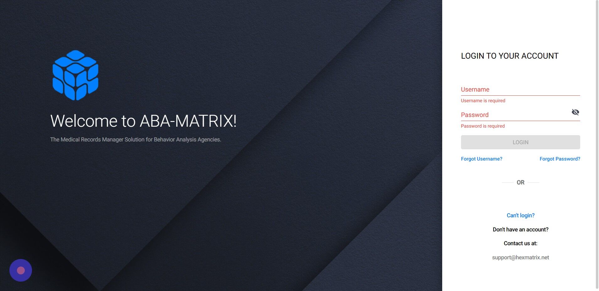 1. Go to the landing page:https://app.abamatrix.com/authentication/login