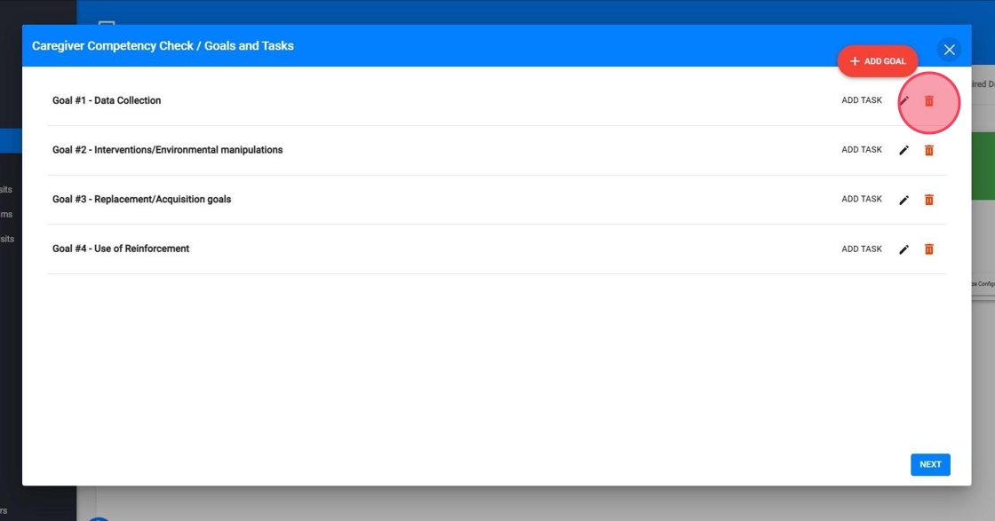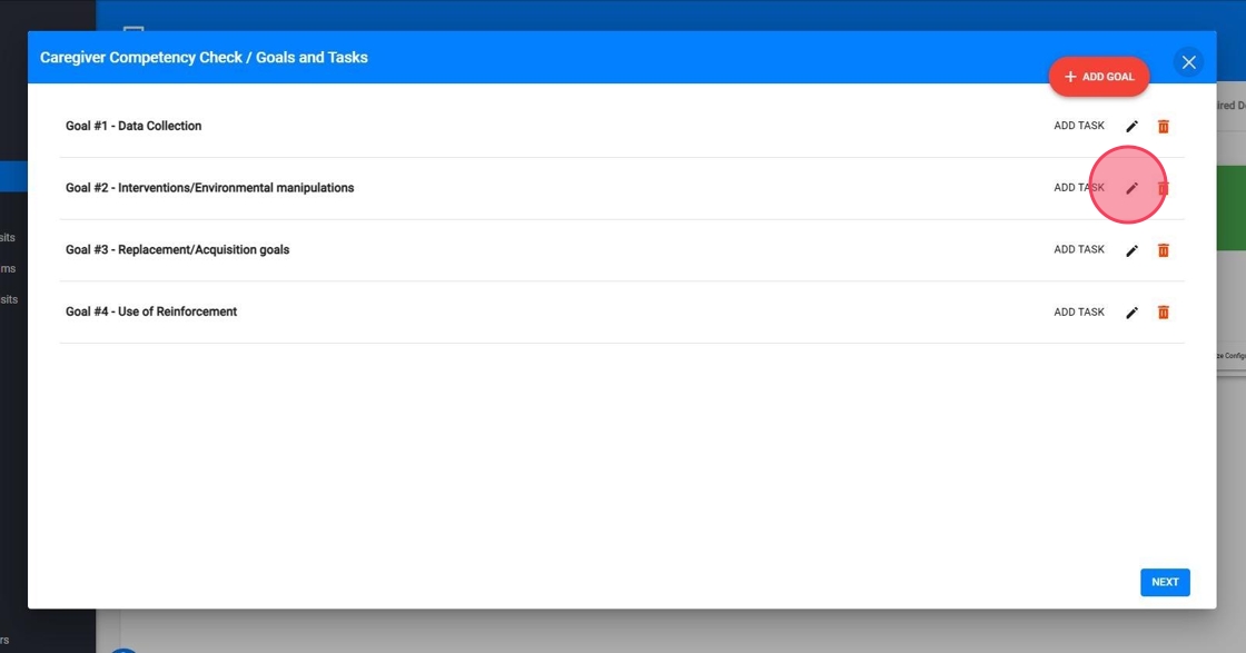 4. The first step would be to configure the Goals and tasks that are going to be evaluated. By default, the system has suggestions that you can edit as necessary.