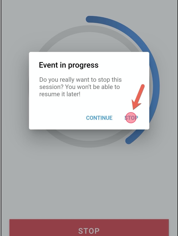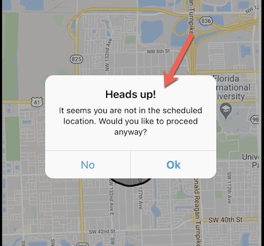 Tenga en cuenta que si está lejos del lugar programado de terapia, la aplicación le avisará antes de iniciar o detener la sesión: