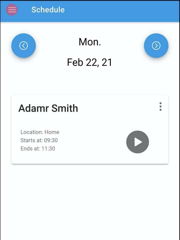 4. Una vez que acceda a la aplicación, accederá a la página Schedule. Desde esta página podrás acceder a todas tus citas programadas. Observe el ícono de hamburguesa en la esquina superior izquierda, úselo para abrir el menú: