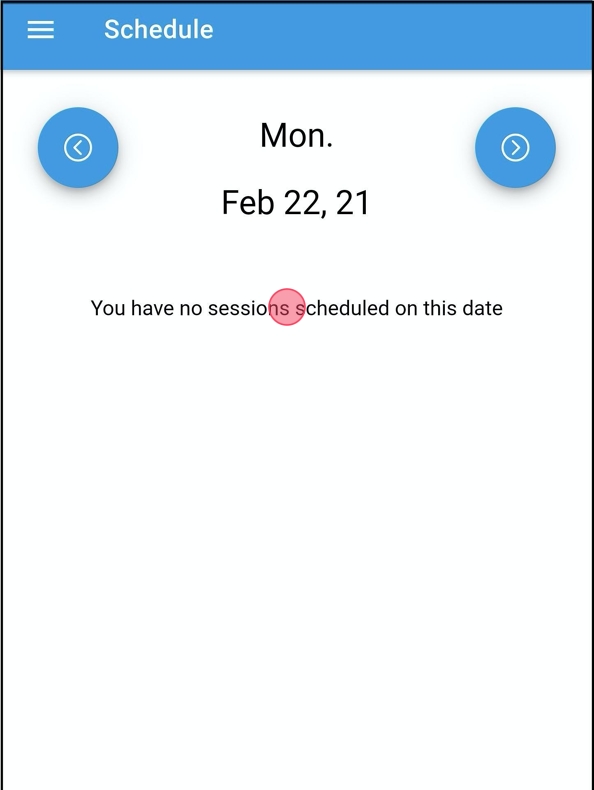 6. En la página Schedule, puede usar los botones de navegación o deslizar el dedo hacia la derecha o hacia la izquierda para navegar hacia adelante o hacia atrás un día a la vez. Observe la fecha seleccionada entre los botones de navegación.
