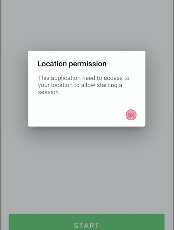 16. Como se mencionó anteriormente, para completar una visita, haga clic en el botón Start en la página Sesión. Tenga paciencia y no cierre la aplicación mientras accedemos a la ubicación de su dispositivo y registramos sus coordenadas GPS para la visita. El proceso puede tardar unos segundos dependiendo del dispositivo: