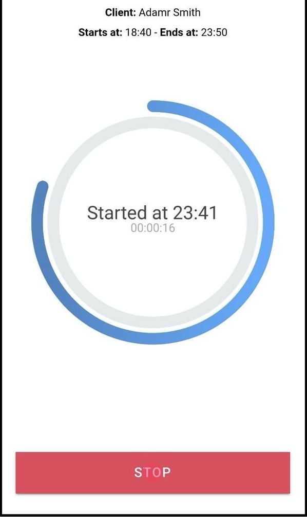 17. Si la visita se inicia exitosamente, un temporizador comenzará a registrar las marcas de tiempo de su visita.