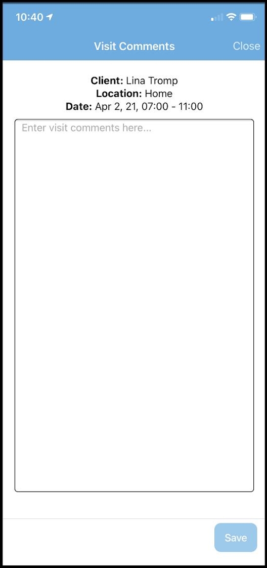 - Además, las visitas no se pueden iniciar después de la hora de finalización designada. Planifique en consecuencia para garantizar que todas las visitas se inicien y completen dentro de los plazos especificados.