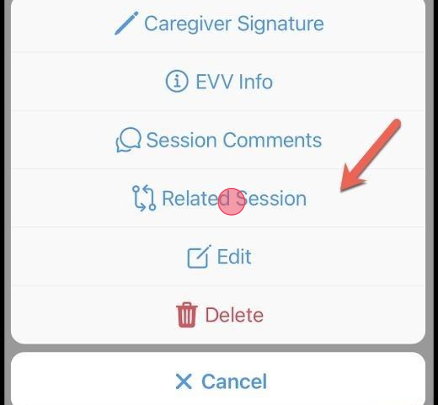 33. Para agregar una visita relacionada, los RBT pueden hacer clic en el ícono de tres puntos y seleccionar Sesión relacionada: