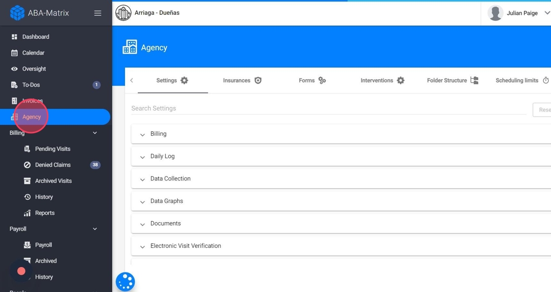 1. Vaya a la pestaña Agency