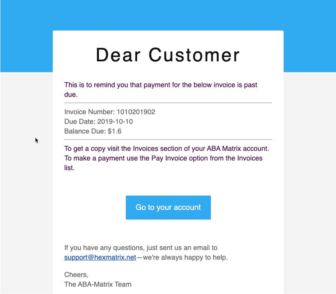 1. A medida que se acerque la fecha de vencimiento de la factura, el sistema comenzará a enviarte alertas en forma de correos electrónicos: