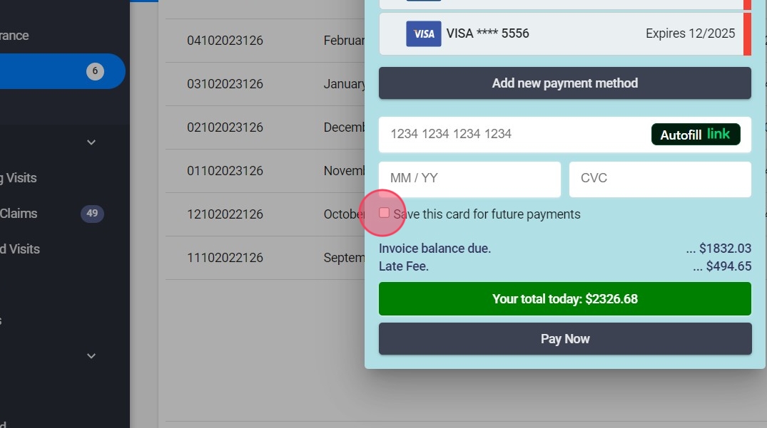 - Después de completar la información necesaria, haz clic en “Save this card for future payments.”