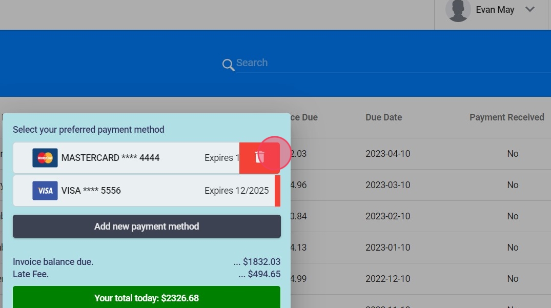 Esta función permite a los usuarios guardar de forma segura su(s) método(s) de pago preferido(s) para su uso futuro. Esto ahorra tiempo al pagar facturas, ya que no es necesario volver a ingresar los detalles de la tarjeta para cada transacción.