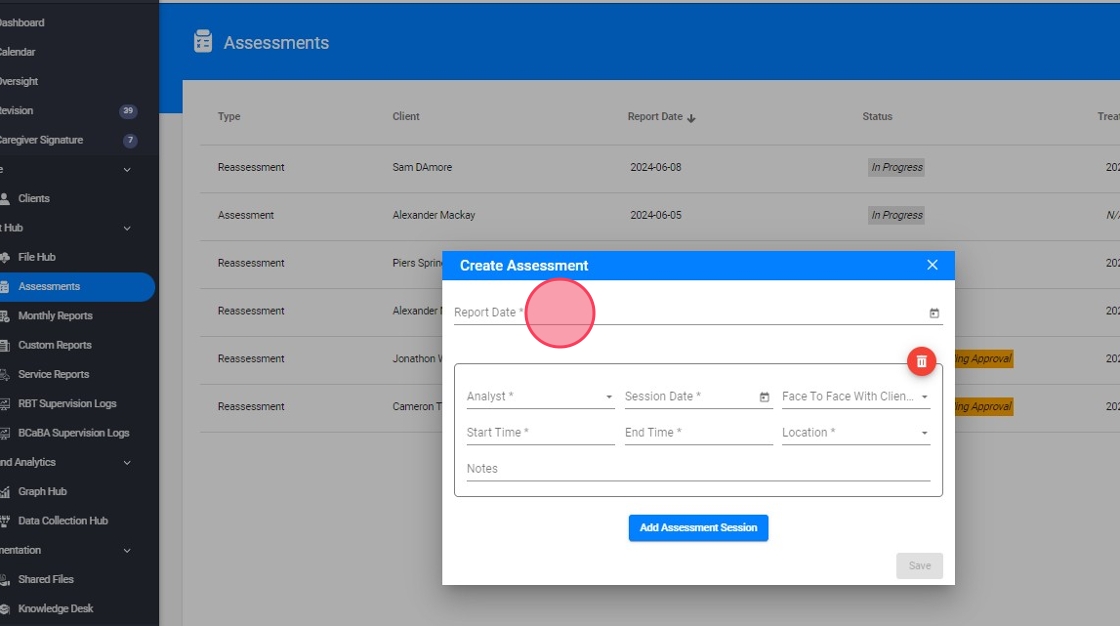 Esta guía proporciona instrucciones paso a paso sobre cómo agregar una evaluación desde la sección de Assessments. Abarca detalles importantes como la selección del cliente, la configuración de la fecha del informe, la adición de observaciones y el guardado de la evaluación. Si sigue esta guía, se asegurará de que se incluya toda la información necesaria y de que la evaluación se guarde correctamente.
