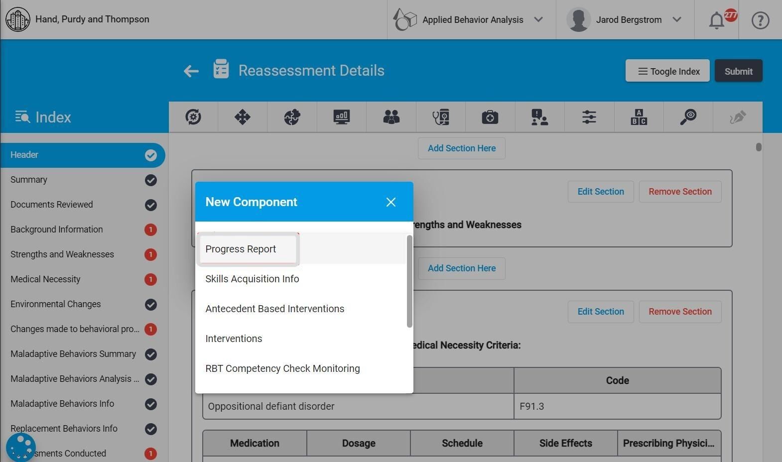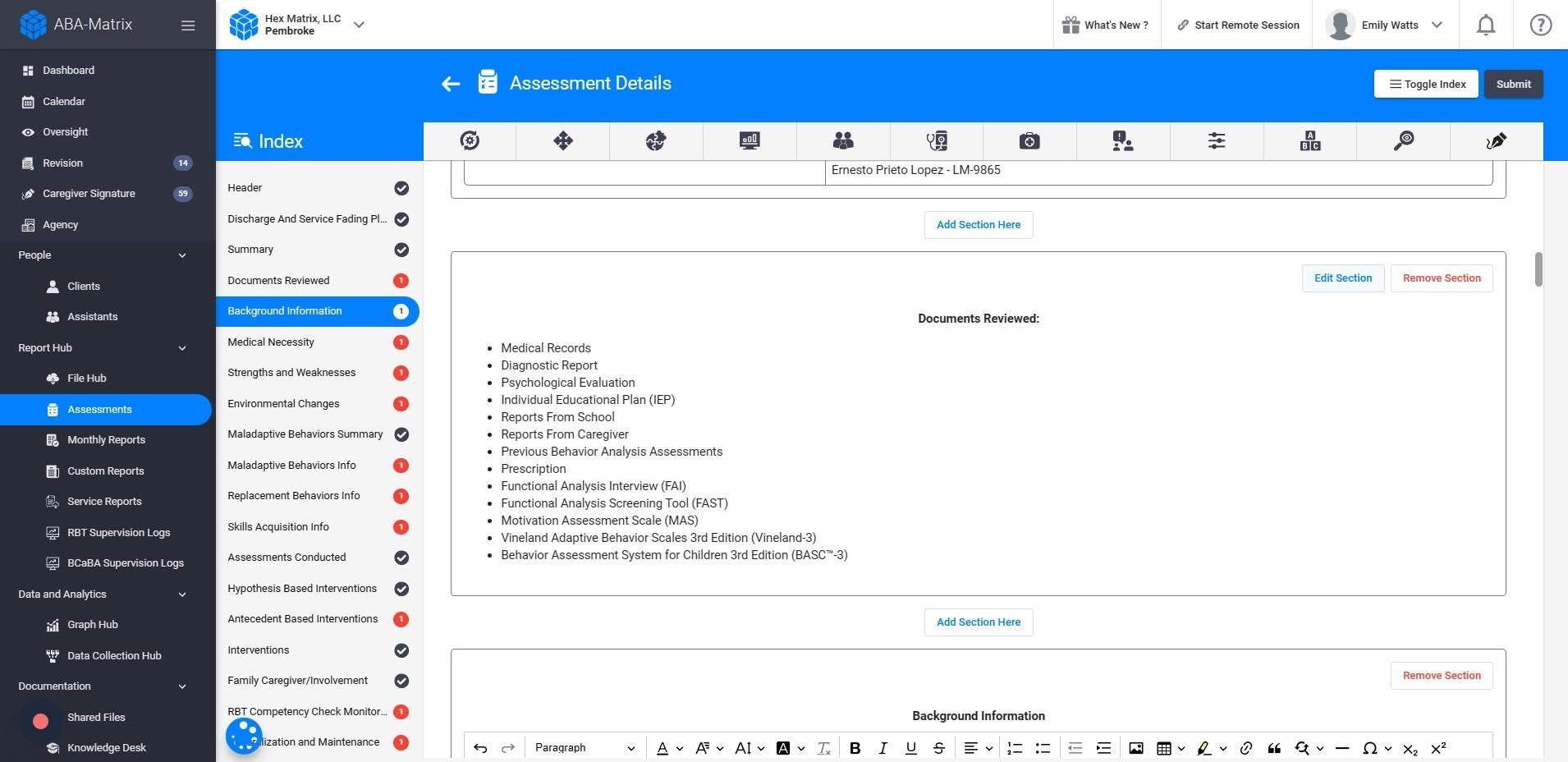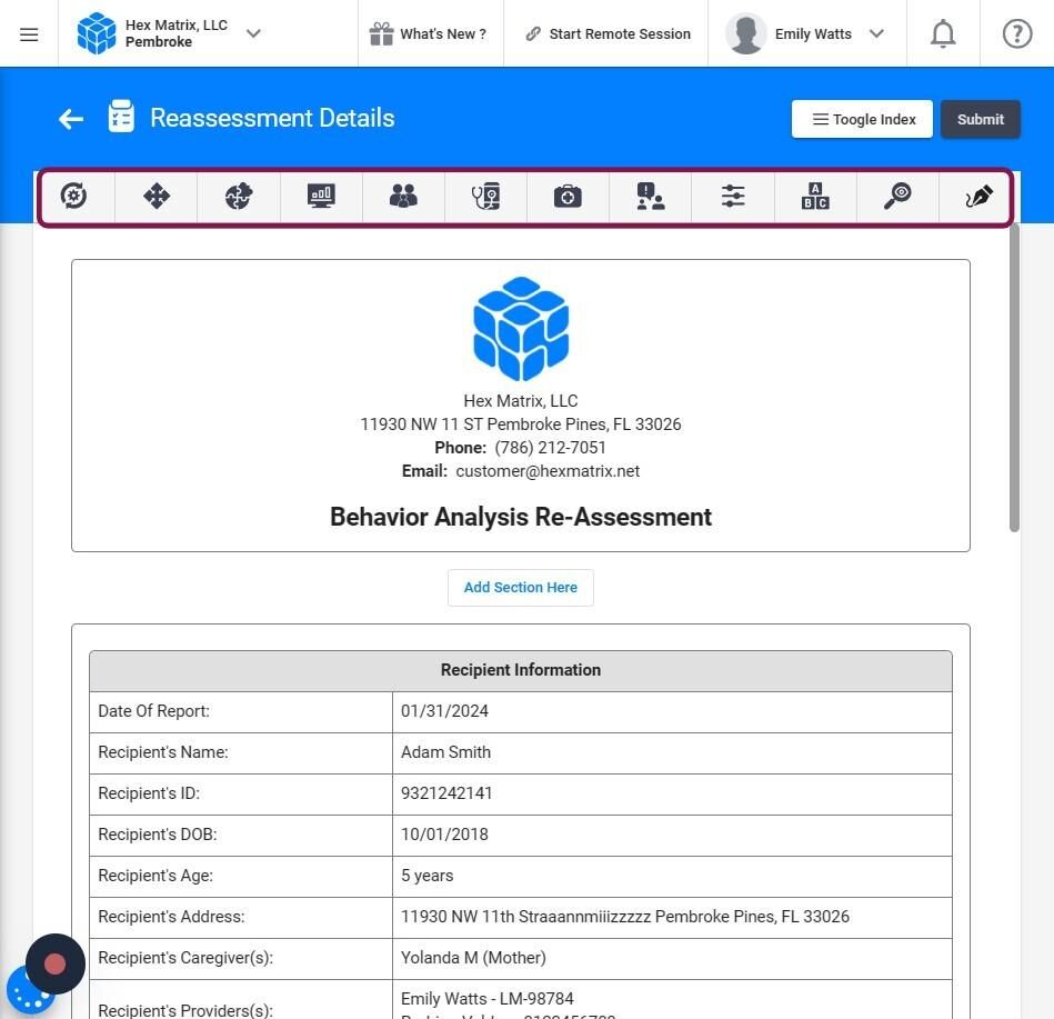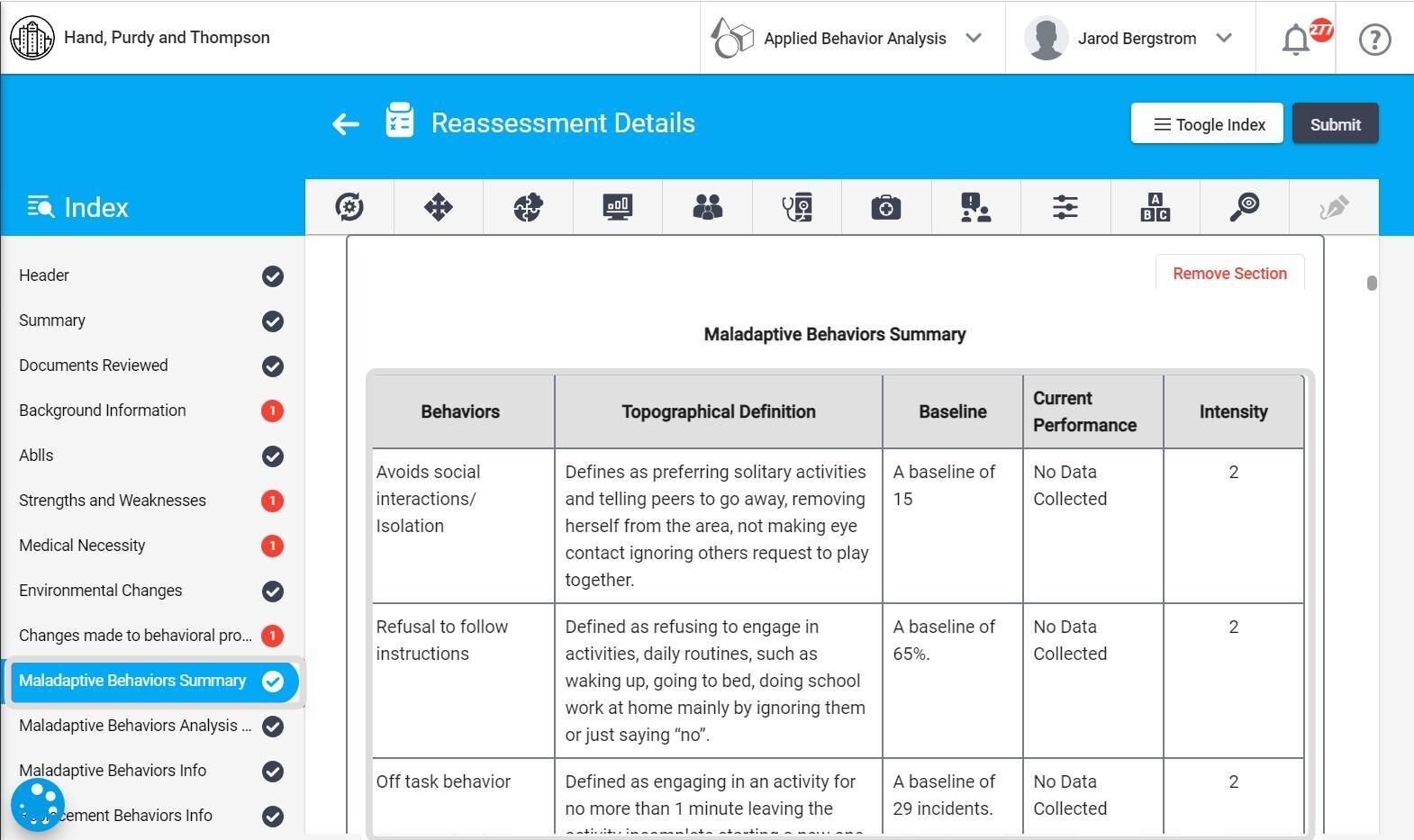 - Maladaptive Behaviors Summary: This section is entirely generated by the system using the client information within the treatment period.