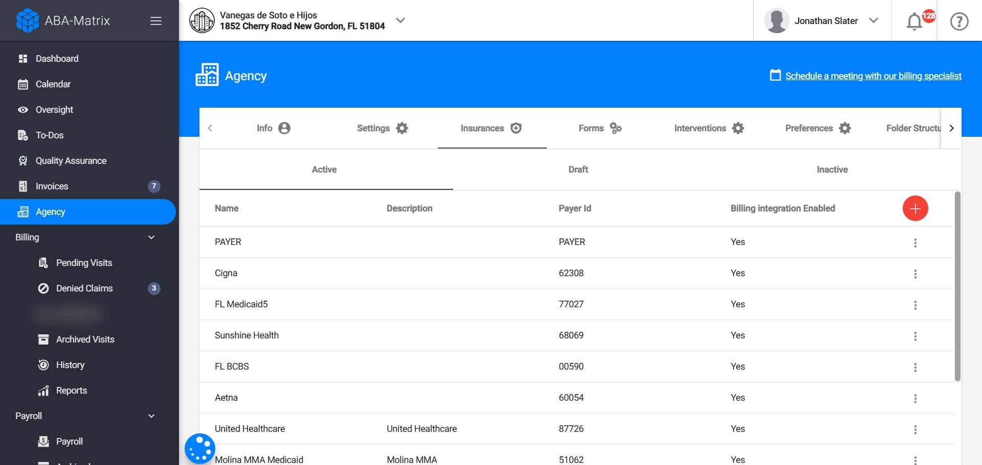 This section lists all the insurances currently in use by your agency. Once an insurance is moved to this section, it becomes available for scheduling visits. While you can continue to make certain edits, such as adding modifiers to procedure codes, major changes cannot be made once the insurance is linked to a scheduled visit.