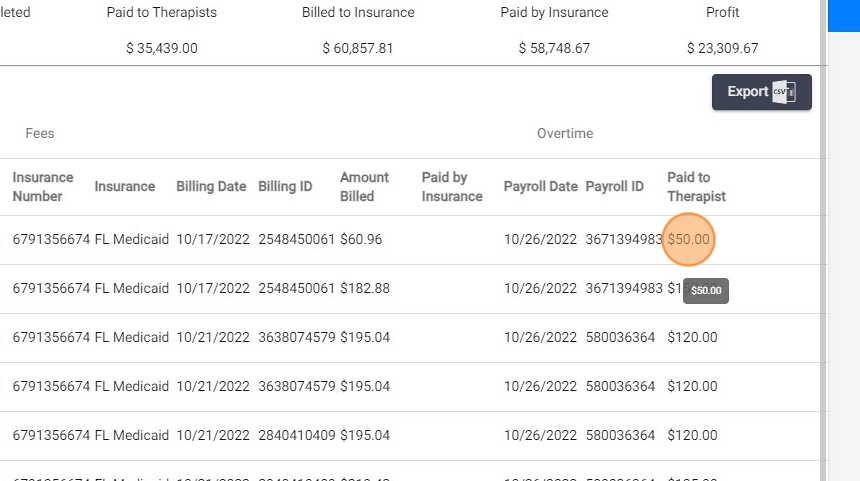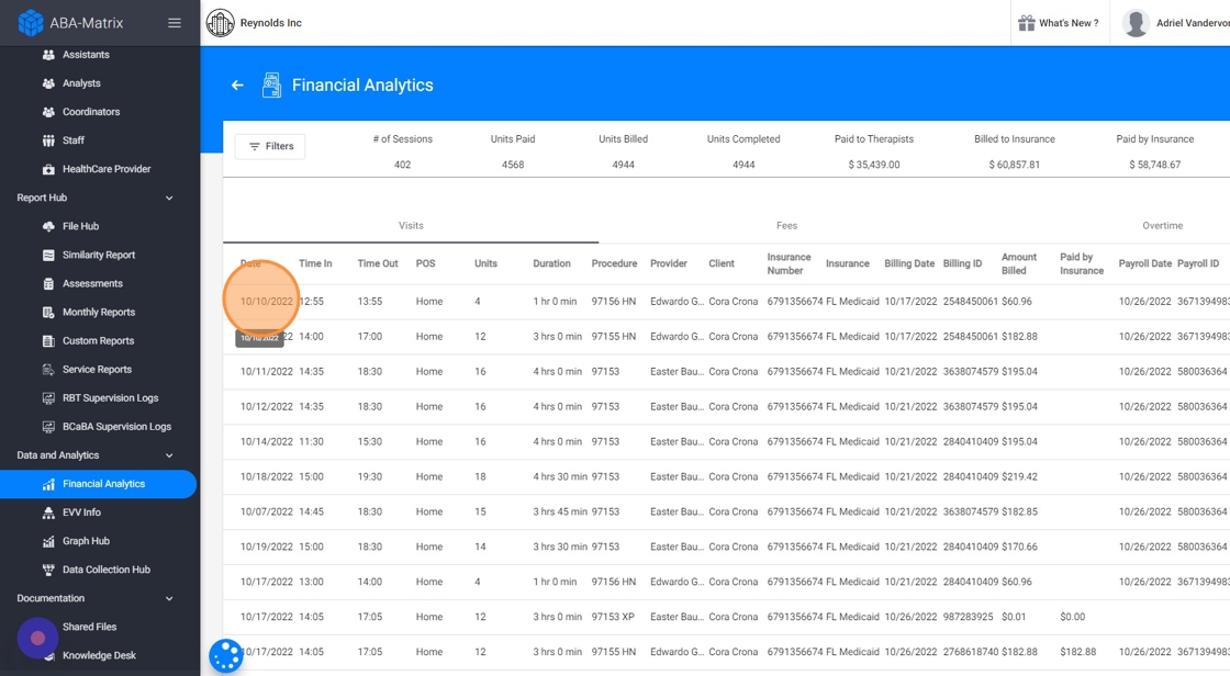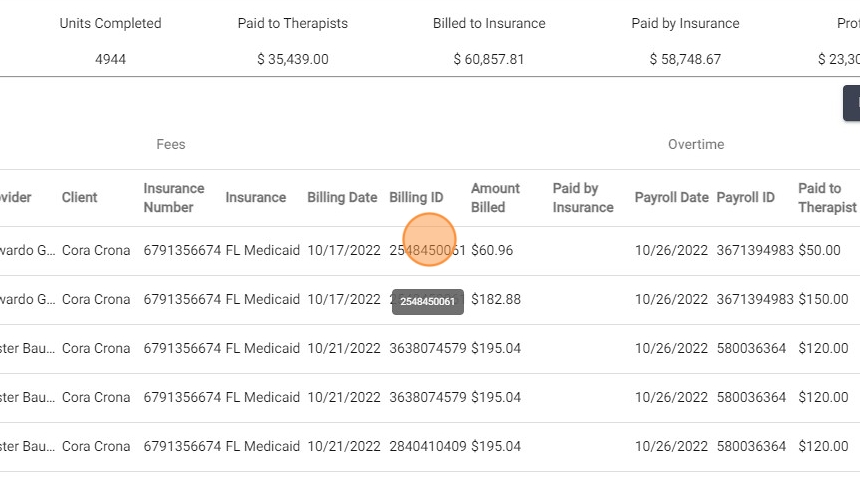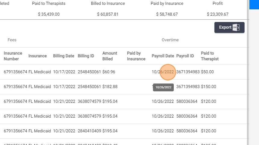 10. También puede ver la fecha de la nómina y el ID si realizó una nómina (payroll) para esa visita.