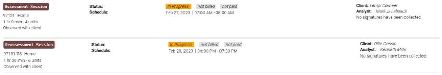 - RBT Supervisions will go to "in review" status because once submitted and signed by the analyst, they need to be reviewed and signed by the supervised RBT. Once signed by the RBT, the session will go to the next status (completed).