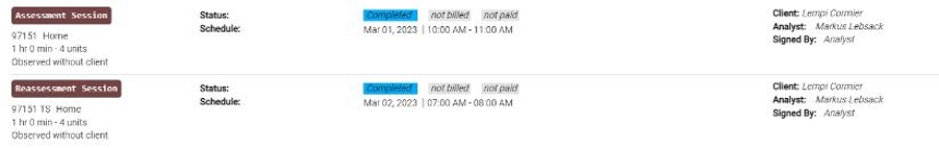 6. The session will be Completed after the analyst assigned to the case has reviewed and signed it. Then it will be ready for billing in the system.
