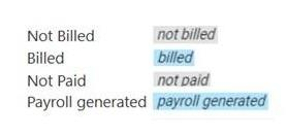 20. Events that are created in the program are also categorized by status if they are Not Billed, Billed, Not Paid, and Payroll generated .