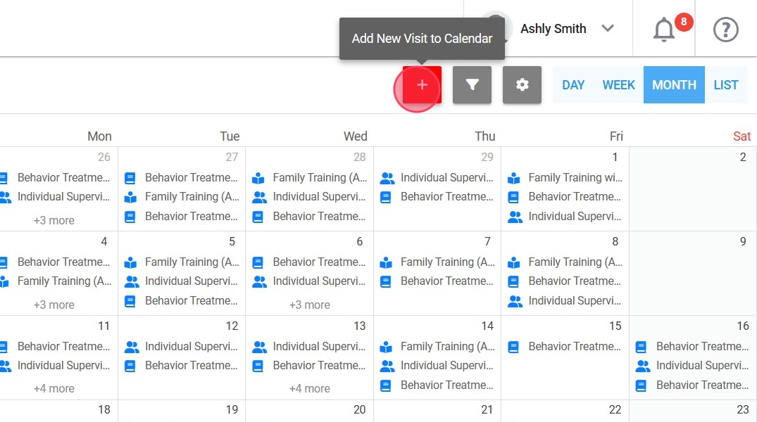 2. To create a new 'Behavior Treatment Session,' select the plus icon situated in the top right corner of the screen.