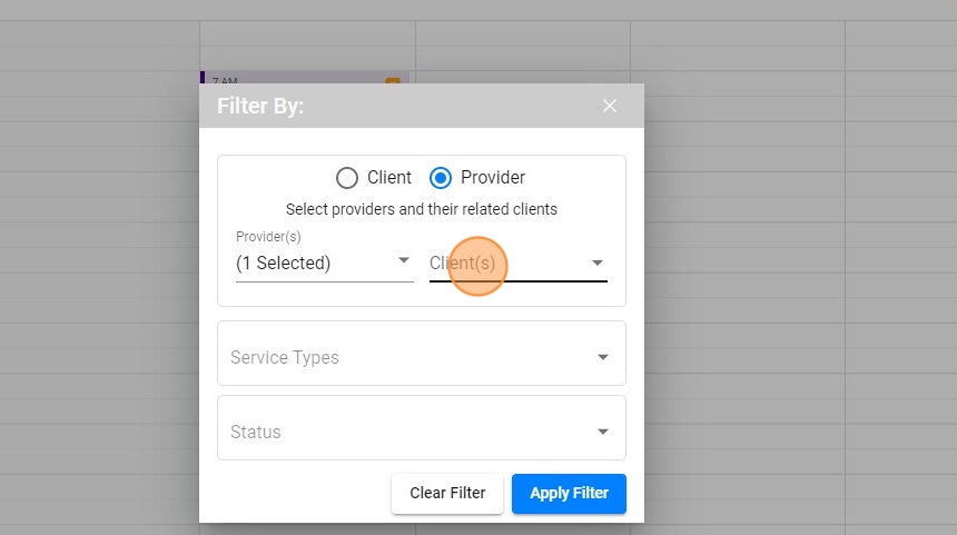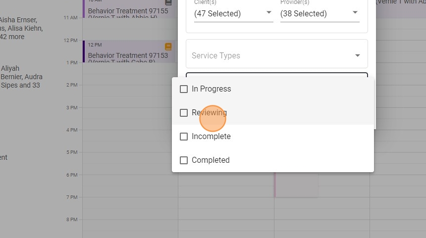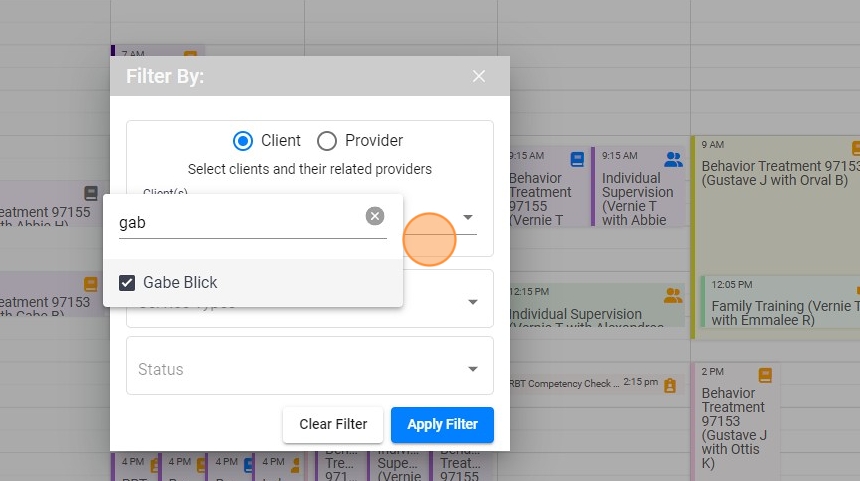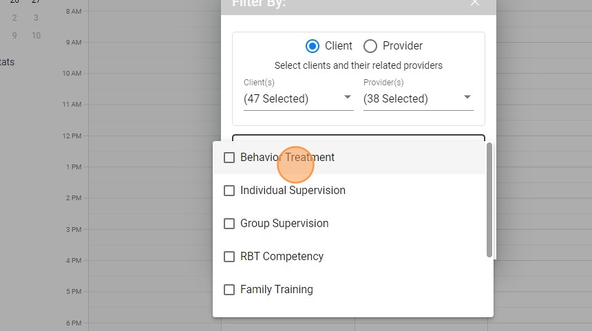 14. Once you've selected a client, you can choose from the providers assigned to that particular client and select one or more specific therapists.