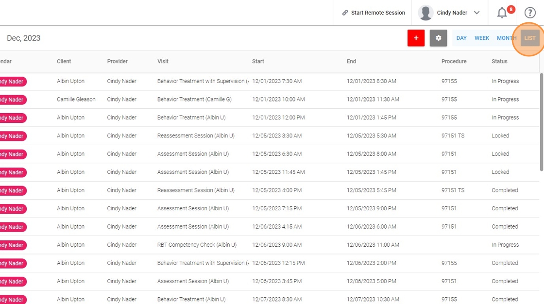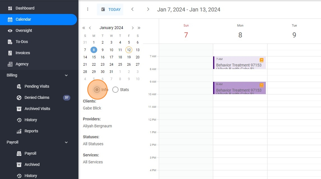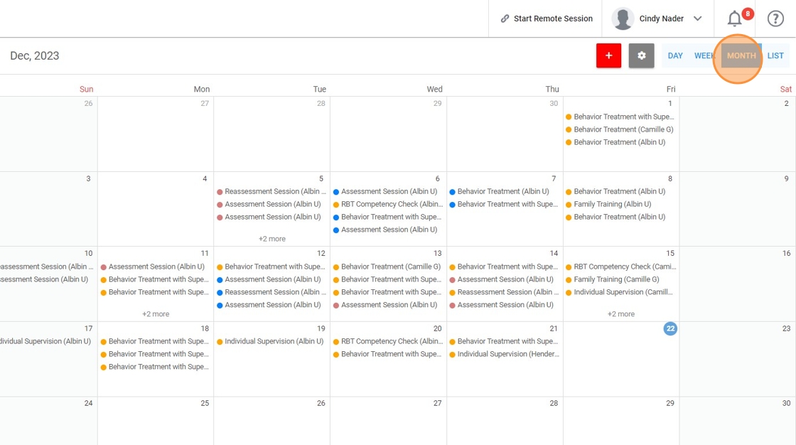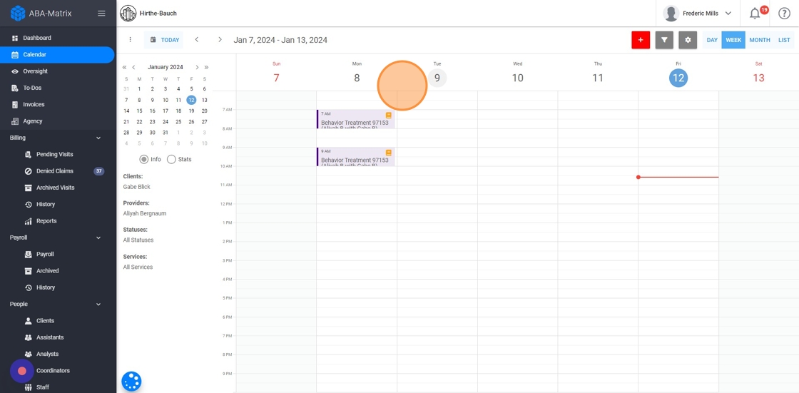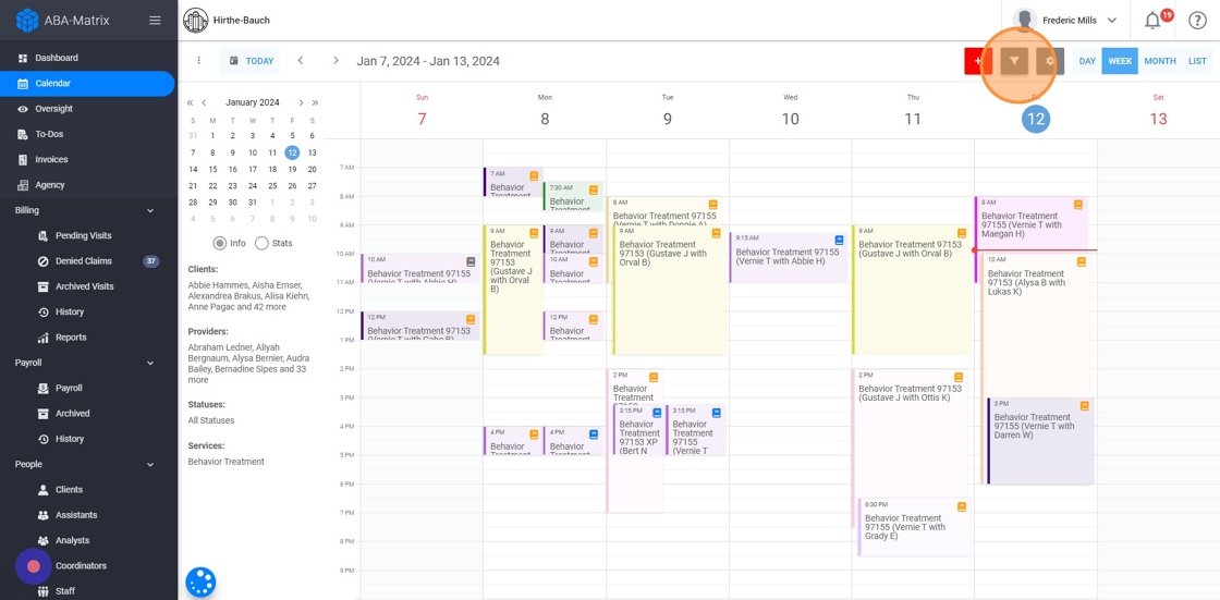10. Even though by default administrative accounts see appointments for all agency clients, you can use the 'Filter' function to view the calendar for a particular client and therapist.