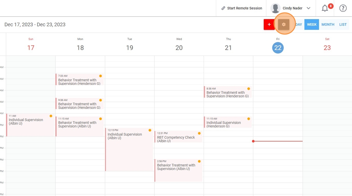 7. You can personalize the color of each client's calendar by simply clicking on the settings icon.