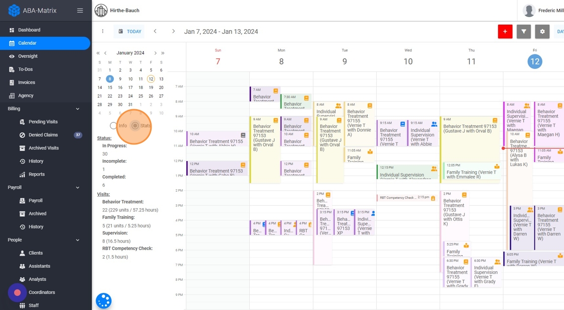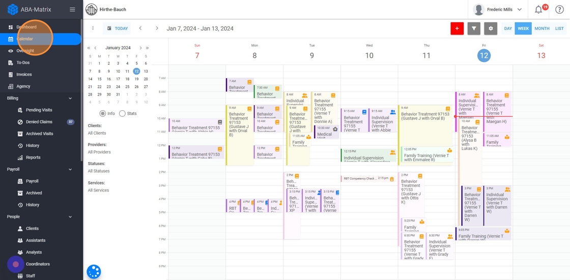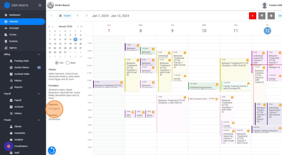 This guide provides step-by-step instructions on how to utilize the calendar feature from an administrative account. It explains how to filter the calendar by client, therapist, service type, and status. It also highlights the ability to view detailed information and statistics about appointments directly on the calendar. This guide is useful for anyone looking to efficiently manage and organize their scheduling and appointments.