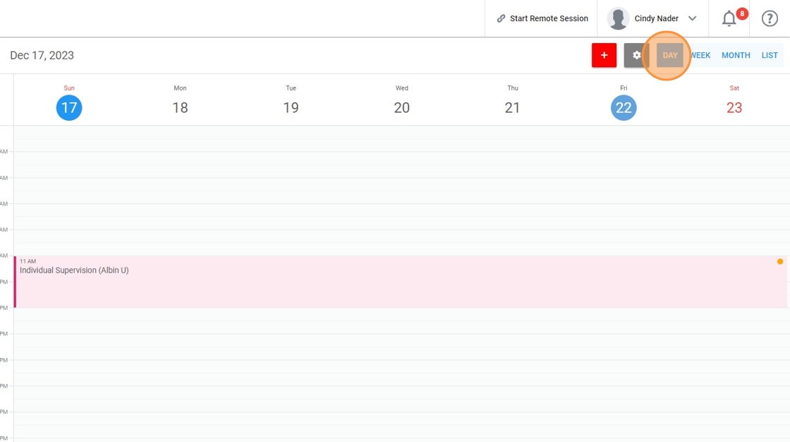 3. You have the option to view the calendar in various formats and can view sessions on a weekly basis.