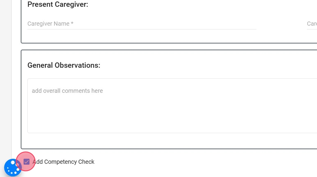 11. Una vez que haya hecho clic en la casilla de verificación "Add Caregiver Competency check", aparecerá una nueva pestaña en la que debe completar la evaluación requerida.