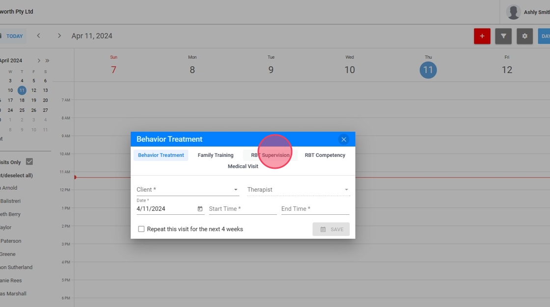 2. Choose "RBT Supervision" as the type of event you want to schedule.