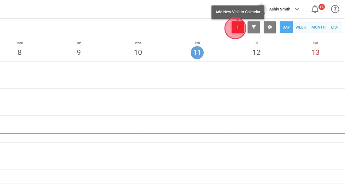 1. Desde el "Calendario" haga clic en el botón "+" ubicado en la esquina superior derecha de la pantalla.