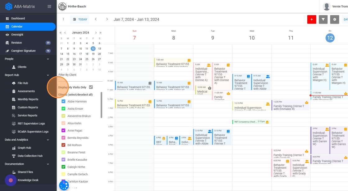 12. La configuración predeterminada en el calendario muestra solo sus visitas. Ajuste la opción "Display My Visits Only" para incluir o excluir visitas de otros proveedores con los clientes seleccionados.
