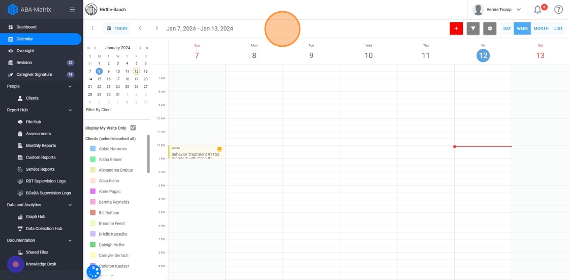 Esta guía proporciona instrucciones paso a paso sobre cómo utilizar la función de calendario como terapeuta en la plataforma ABAMatrix. Explica cómo seleccionar y deseleccionar clientes, ver visitas en el calendario, ajustar opciones de visualización, filtrar por tipo de servicio y estado, y programar visitas de manera efectiva para evitar superposiciones con otros proveedores. Al seguir esta guía, los terapeutas pueden gestionar eficientemente sus citas y mantenerse organizados