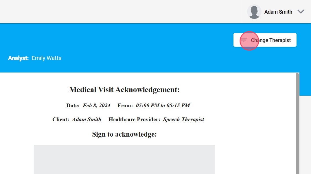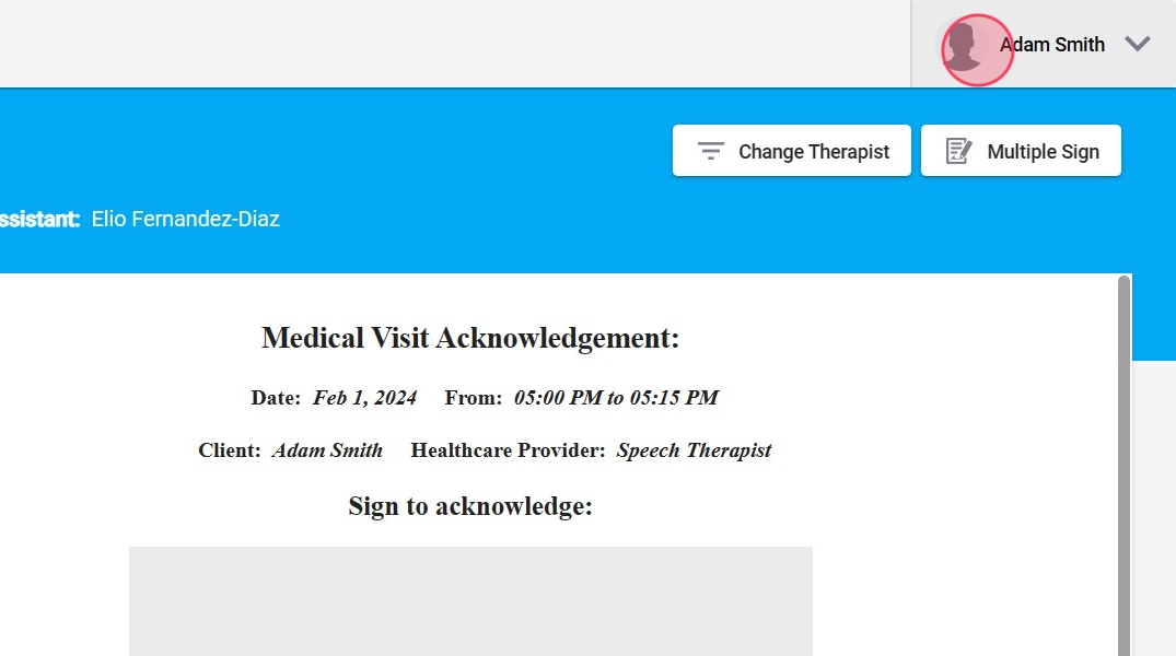 2. Upon accessing the program, you will be able to view the client's name, the chosen therapist, and all the events awaiting signatures.