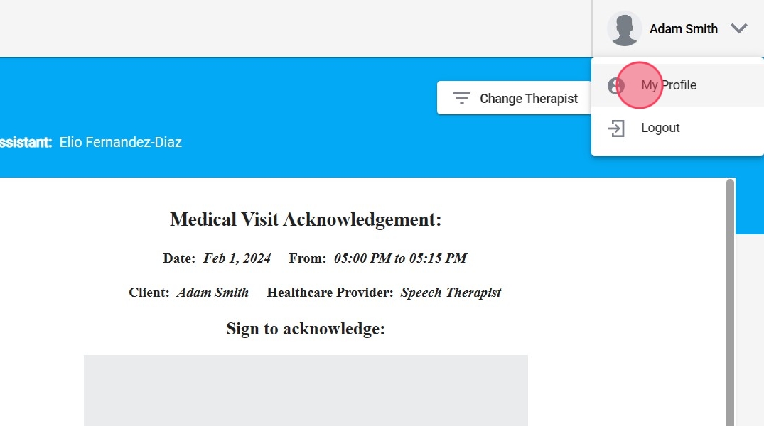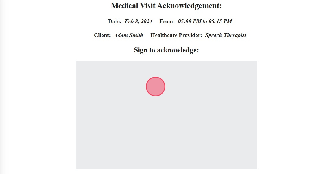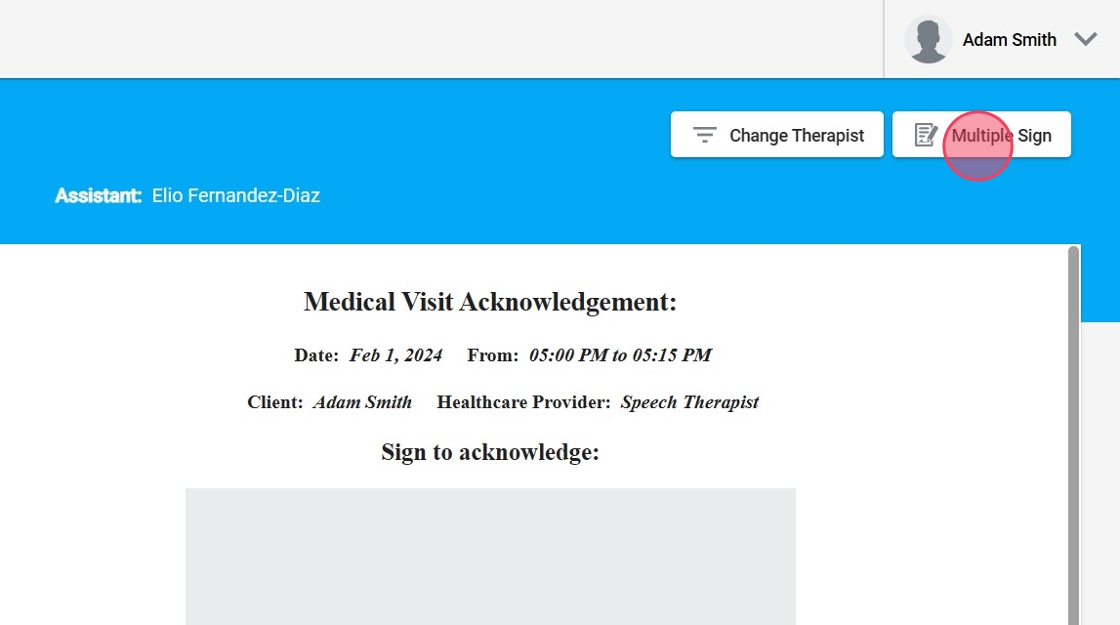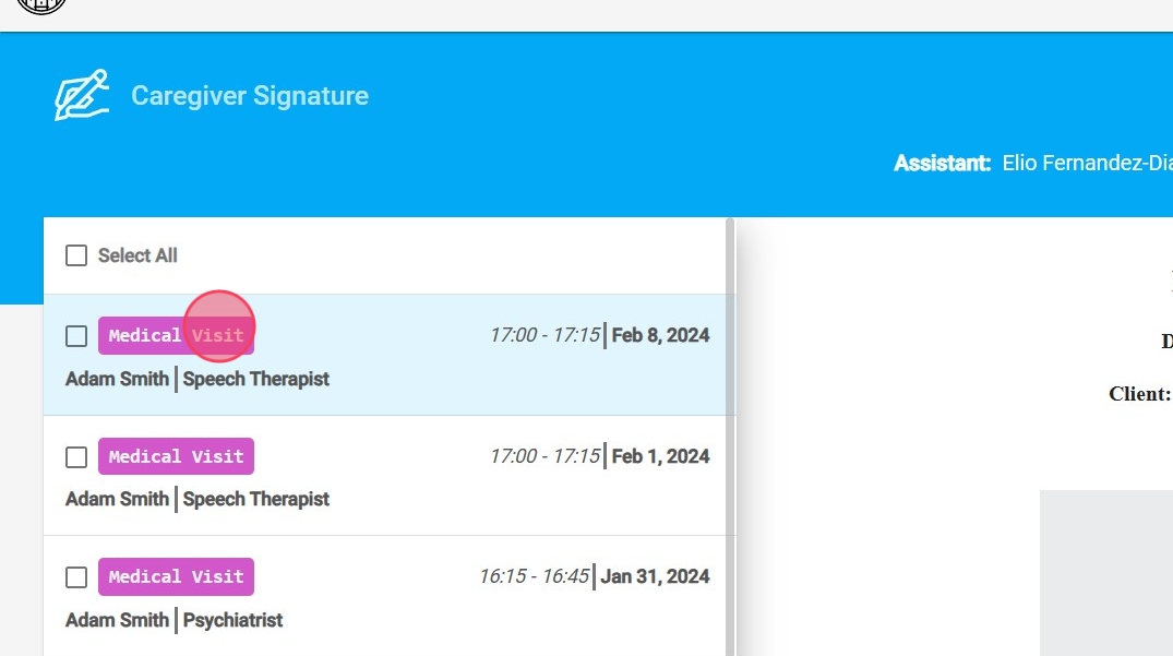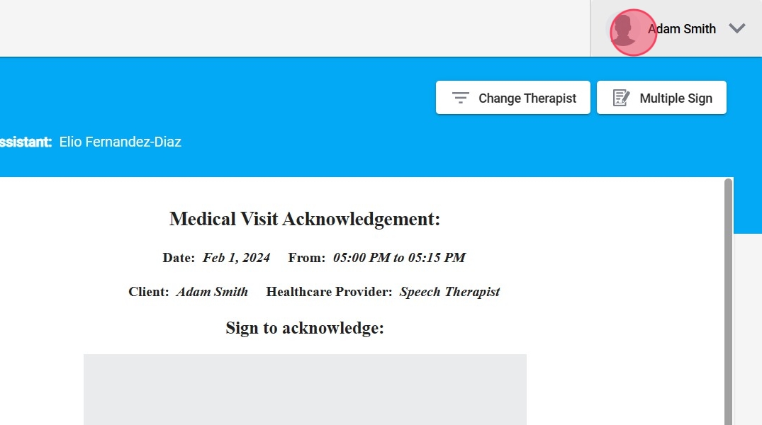 4. Si usted selecciona un terapeuta que no tiene eventos listos para firmar, la pantalla aparecerá en blanco.