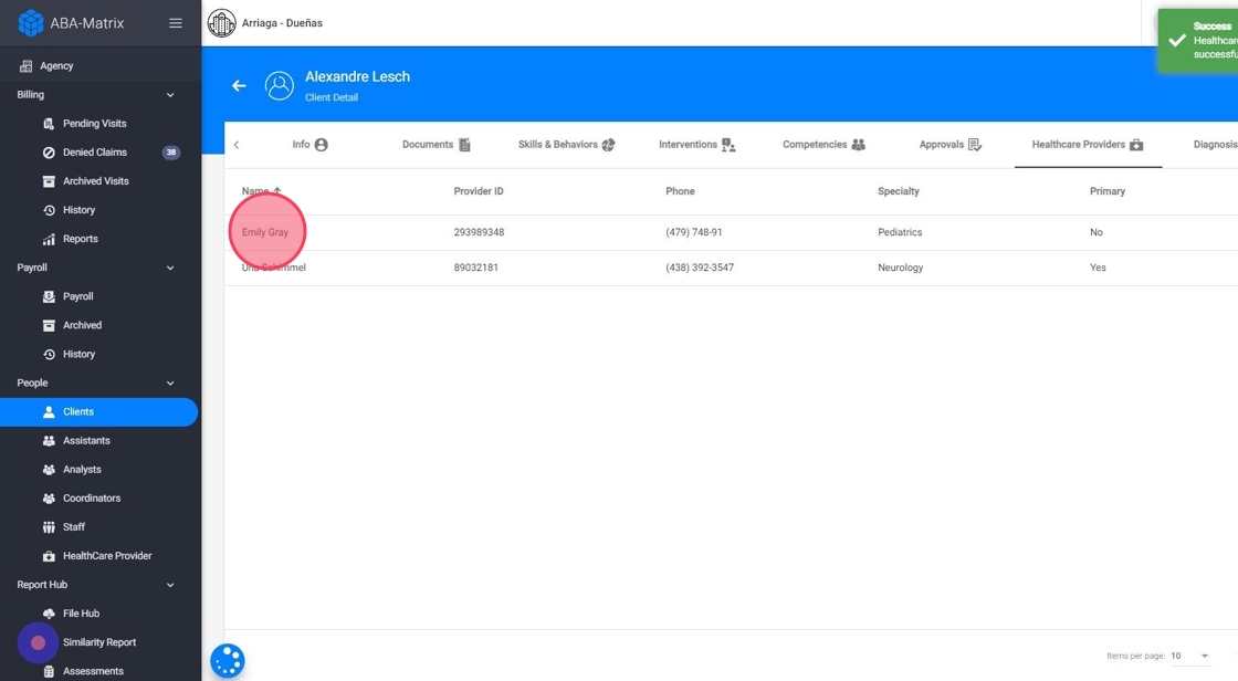 4. Y ahora el proveedor de servicios de salud debería aparecer en la lista.