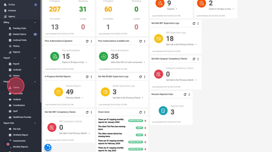 When you enter the program with your username and password, go to the left side menu of your screen, specifically the "clients" button, as shown in the image.