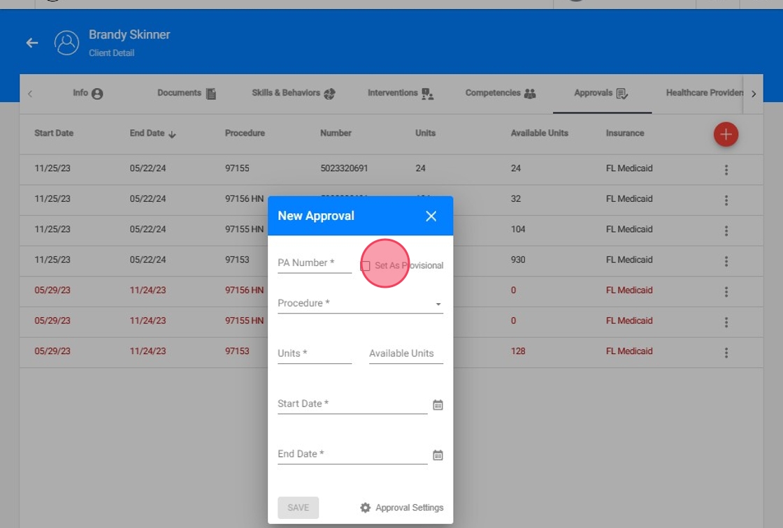 You will be able to add units without the need for a reference number. This will allow you to include sessions to work with the client even if you do not have the reference number or when the work units have been completed. Once this option is selected, you will notice that the "number" field will become optional, so it will not be necessary for the approval to be generated.