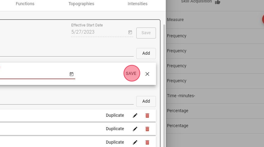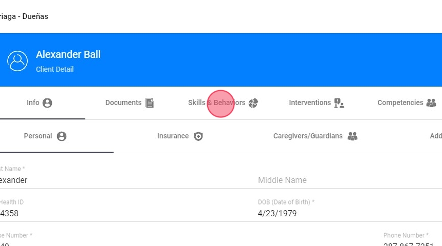 3. Seleccione el comportamiento desadaptativo, el comportamiento de reemplazo o las habilidades que desea editar.