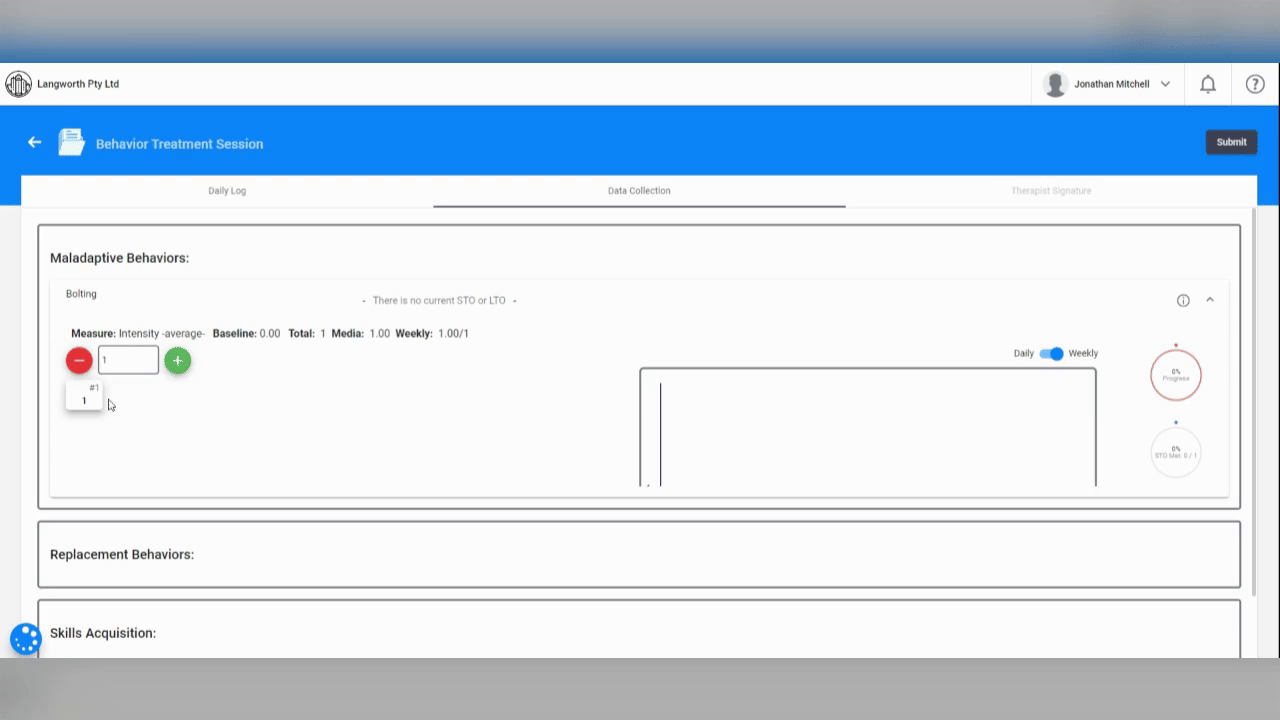 For the purpose of this tutorial, only Maladaptive Behaviors will be explained, but it will work the same for Replacement Behaviors, Skill Acquisitions, Caregiver Goals and RBT Goals.
