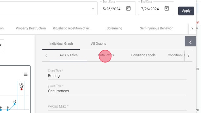 - Definición: Las rutas de datos son las conexiones entre dos puntos de datos en el sistema, que representan visualmente el progreso o los resultados a lo largo del tiempo en un gráfico. Función: ilustra los cambios en el comportamiento o las habilidades conectando puntos de datos recopilados durante diferentes sesiones.