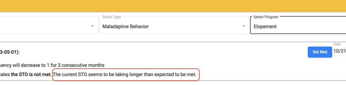 - Un texto indica si los datos recopilados sugieren que la STO debe marcarse como "met" o no.