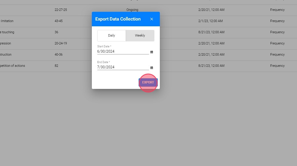 4. Haga clic en "Export Data"