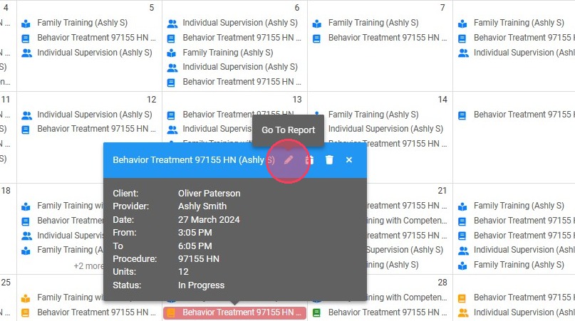 2. Acceda a la nota de la sesión a través del icono "Go To Report"