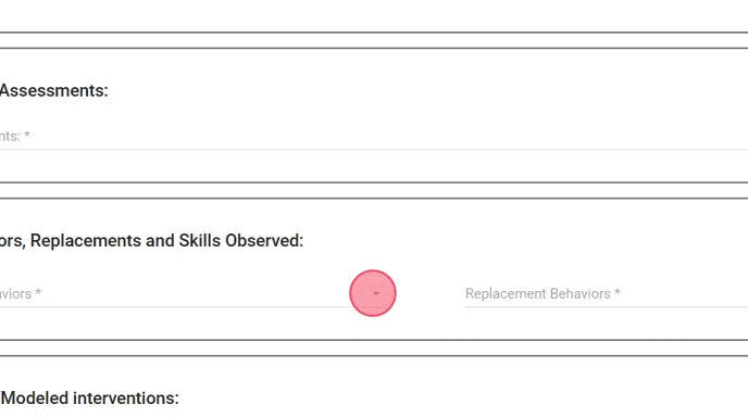 Una vez allí, ubique la sección titulada Target Behaviors, Replacements and Skills Observed. En esta sección, simplemente seleccione las conductas, reemplazos o habilidades que fueron observadas durante la sesión para asegurarse de que queden registradas correctamente.