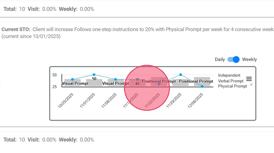 - Current STO: Ongoing Short-Term Objective for the chosen behavior, replacement, or skill.