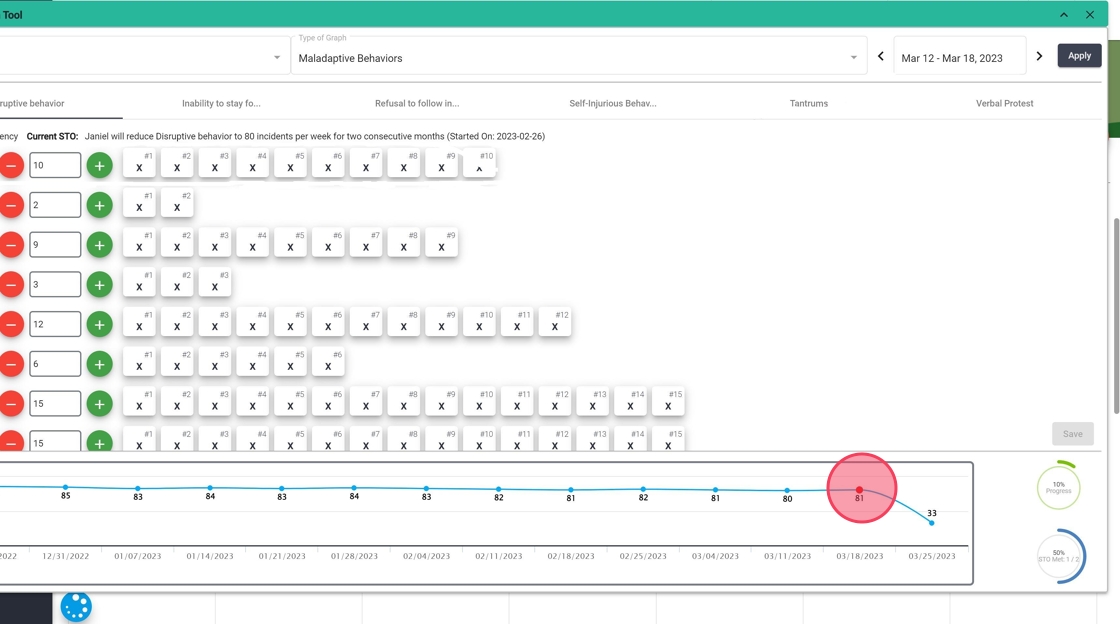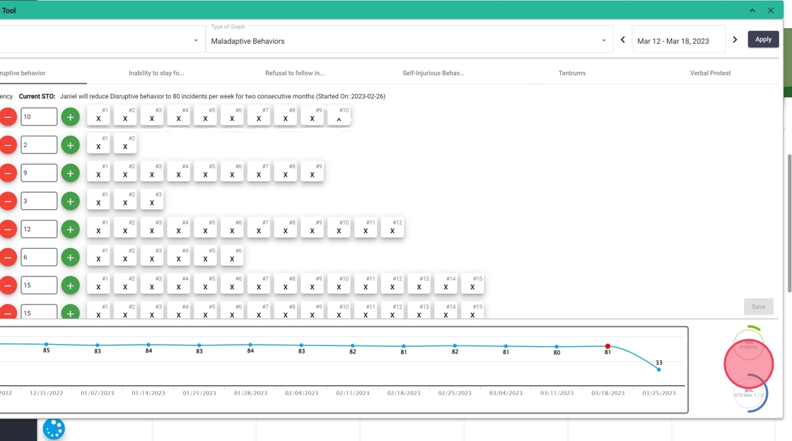 2. You only have to filter by the client you want, the type of graph (Maladaptive Behaviors, Replacement Behaviors or Skill Acquisitions) and date: